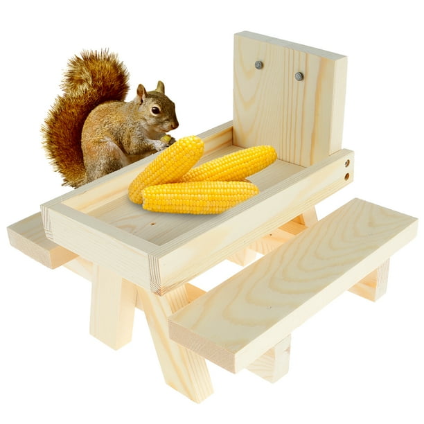 Outdoor Animal Feeder Wooden Squirrel Picnic Table With Two Thick Benches Non Burr Wooden Squirrel Feeding Station Stable Hanging Squirrel Table Feeder For Garden Courtyard Yard Walmart Ca